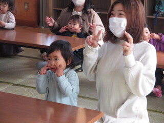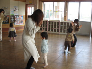 わらべうた遊びでも、のりのりで音楽に乗って飛び跳ねていて楽しそうでした。