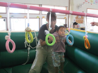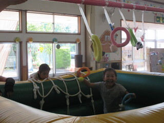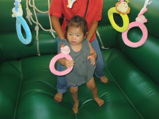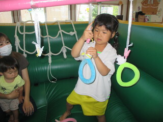 輪投げは高くなったり、低くなったり、大きく揺れたリするため、子どもたちは大盛り上がり!