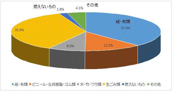 紙・布類と生ごみ類で全体の70%以上を占めています。これらには、リサイクルできるものや本来なら食べられるはずの食品などが多く含まれています。
