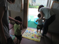今年の夏はとても暑くて、水遊びを楽しみにしていた親子さん2組が
