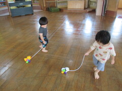 その後、ホールで動物さんとお散歩をし、仲良くホッとひと休み