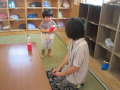 アンパンマン人形に輪っかを投げて(そっとかけて)、遊びました👦👧