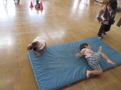 (マットをコロコロと転がります。ハイハイでもOK♪)