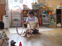 準備運動が上手に出来たあとは、ホールに移動してサーキットスタート!