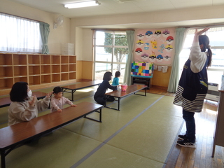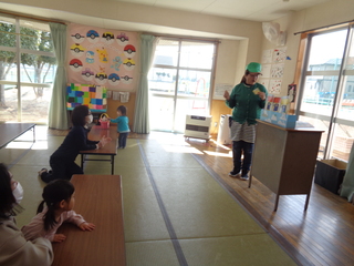 お正月にちなんで縁起達磨の『だるまさん』のペープサートを観ました。