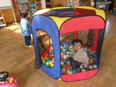 ホールに移動して、みんなでバスを引っぱって、遊びました😍