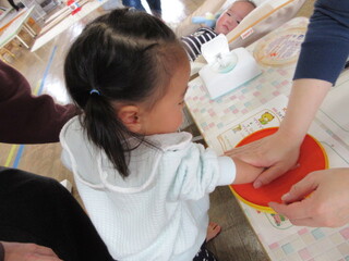 西児童館では[大きくなったかな?&子育て相談日]として、身体測定と町の保健師さんによる子育て相談を毎月行っています。身長・体重をはかったあとに手形(足形)をとったりします。みんなでお子さんの成長を見守っていけたらと思っています(*^^*)
