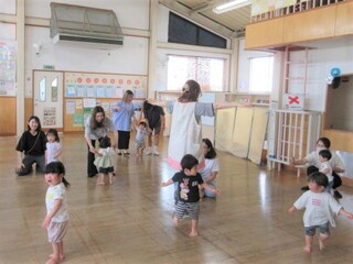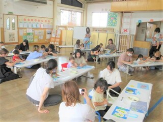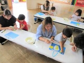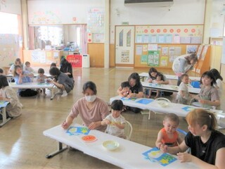 ゆめぐみは、保育園や幼稚園の気分を少しでも体験できるようなプレ保育で、毎月開催しています。朝のお始まりの流れがメインで、ピアノに合わせて歌をうたったり、名前を呼ばれて返事をしたり、出席シールを貼ったり、元気よく体操をしたりして過ごします。今月は『父の日制作 ビールでカンパイ!』を行いました。未就園児のお子さんなら町内外の制限なく自由に参加できますので、ぜひ西児童館に遊びにきてください。