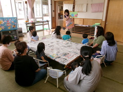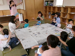 自由に降らせた表現あそび。子ども達も意欲的に取り組んでいました。