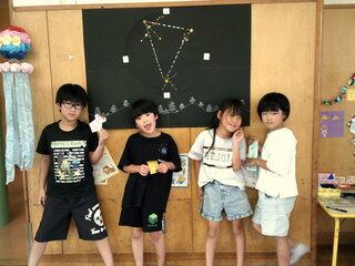 七夕ということで、織姫様と彦星様のでてくる夏の大三角の説明をしました💗💙