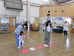 今回のにじいろキャンディーは、みんなで元気に体を動かして「ちびっこ運動会」を行いました。