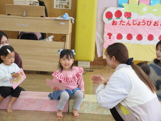 児童館にいるみんなで歌をうたったり、職員の出し物を観たりしてお祝いしましょう。
