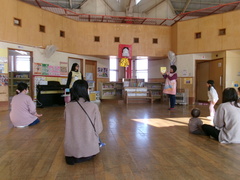 『カレーライスのうた』でにんじん🥕♪たまねぎ🧅♪など一緒に手を動かして楽しみました。