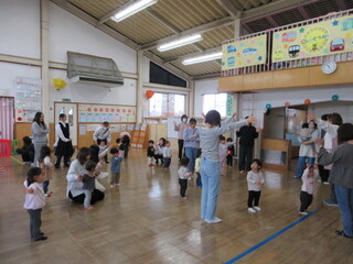 出席シールを貼ったり、元気よく体操をしたりして過ごします。